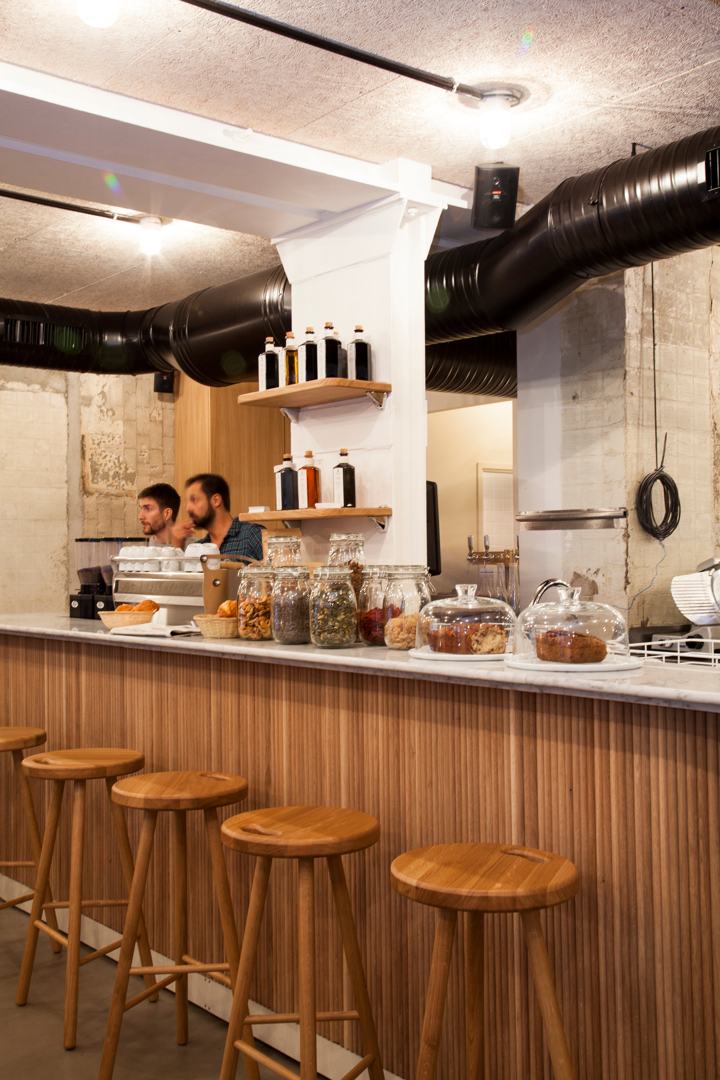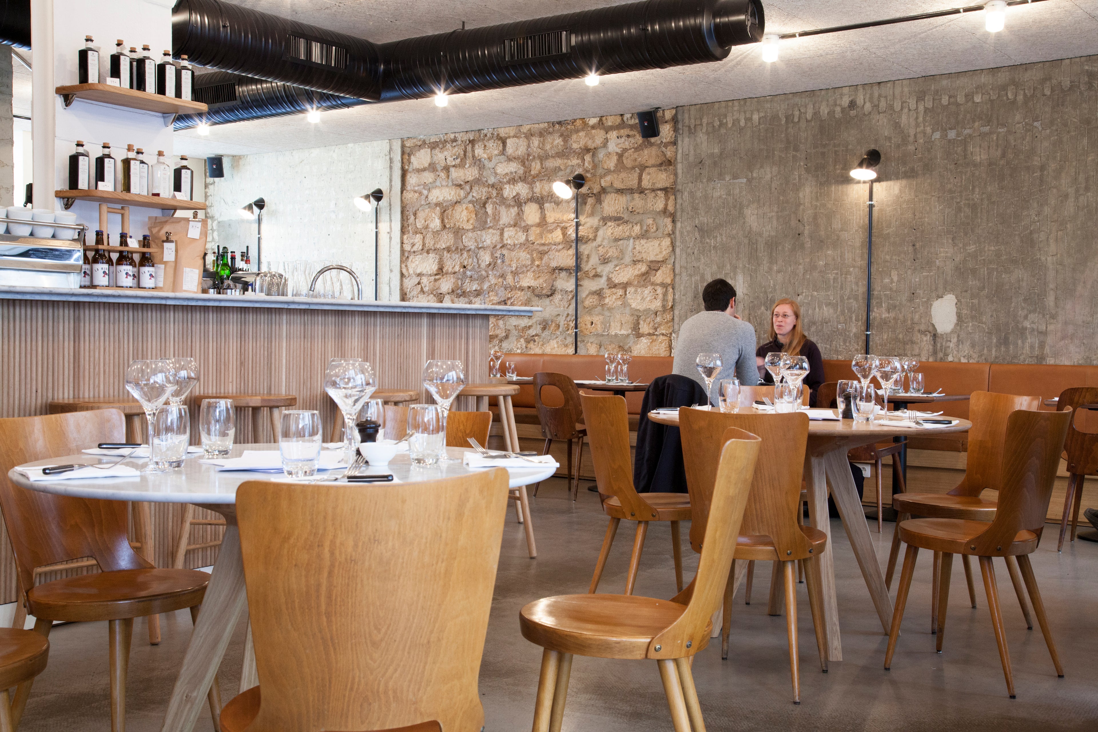 La rue qui vit fort. Le métissage des saveurs et des parfums. La cohabitation du populaire et du bourgeois. Installé en pleine rue du Faubourg Saint-Denis, le 52 Faubourg, tout en doux brutalisme, contraste avec son entourage tout en faisant figure d’incontournable du quartier. Entièrement décloisonné, c’est un espace idéal pour la vie, où chacun peut profiter, boire un café, s’installer en terrasse, déjeuner à deux, dîner à cinq. L’ambiance y est décontractée, chaleureuse, la clientèle éclectique.
