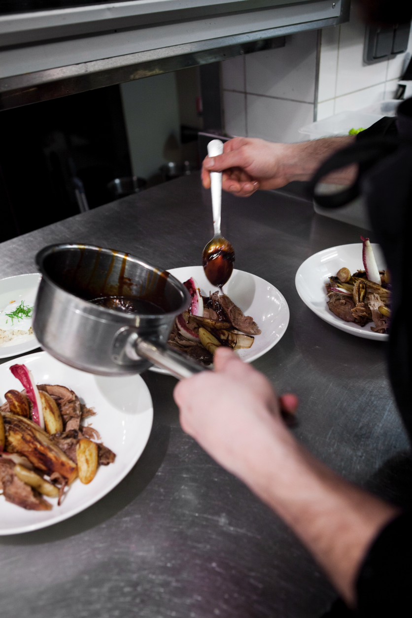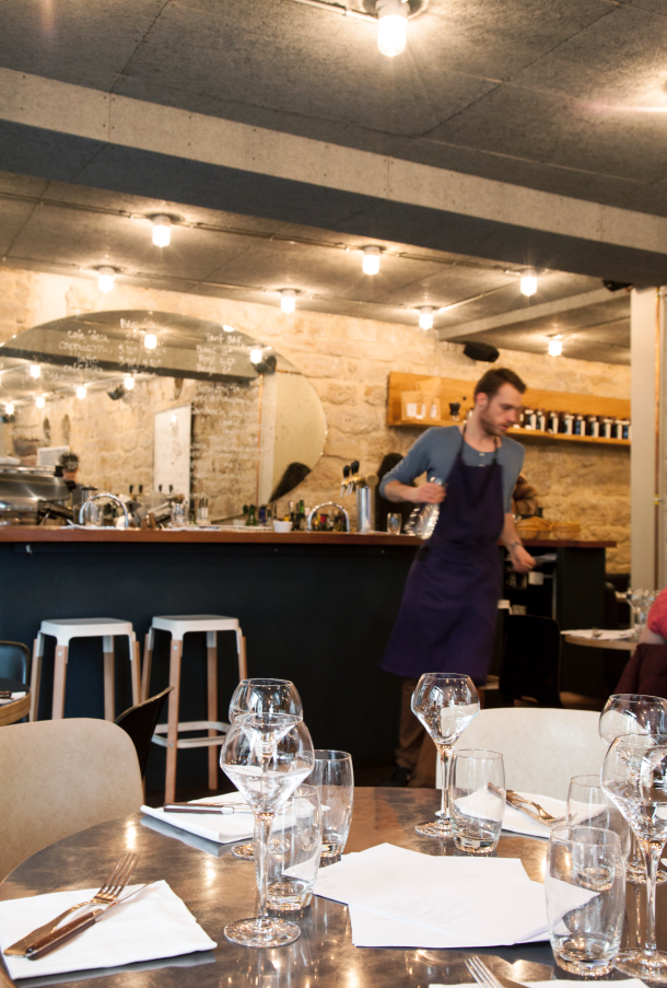 Le service est de bonne humeur, les conseils avisés. On y voit les cuisiniers poser les assiettes à table quand les serveurs sont occupés à conseiller le vin aux clients. Car il est bien question d’accueil, de plaisir donné, au même titre que d’attention aux détails. Façon de réaffirmer que décidément, oui, le bistrot du coin a une âme.